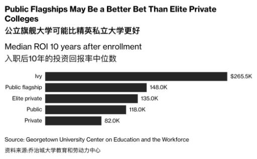 如果你能进入常青藤名校,投资回报率将会很高,但如果你是那99%没有被录取的学生中的一员,去地方和州立旗舰学校,更可以发挥出自己的优势,并带来丰厚的投资回报。